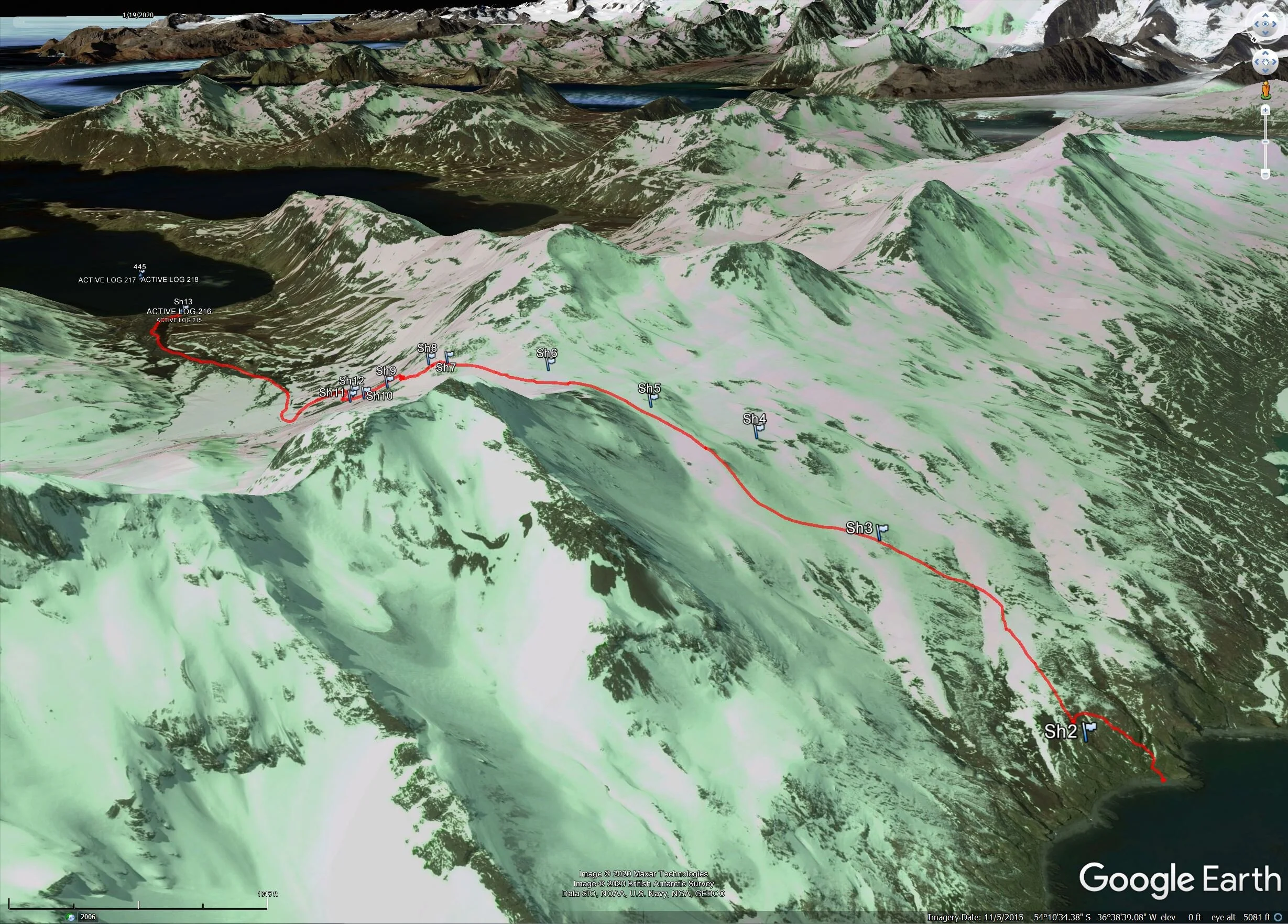 after each expedition - including photographic images, GPS waypoints and tracks, lectures and recaps presented on board - is a tedious but necessary task, demanding that one be well organized both during travel and at your home office. But it’s fun to play with some of the data, where shown below is the track we hiked on the Shackleton Walk on South Georgia, between Fortuna Bay and Stromness (see earlier blog post).