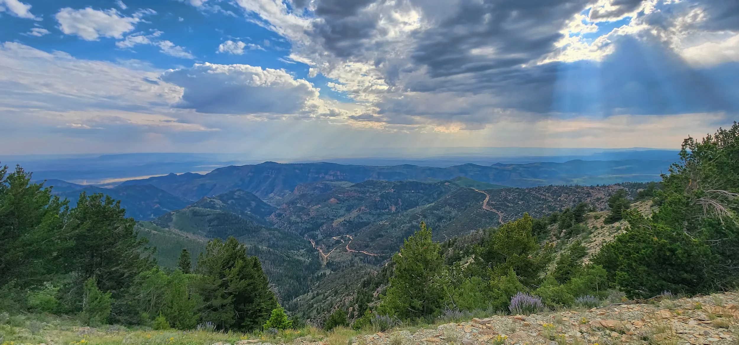 View toward the west from Bruin Point, Utah (10,131 feet (3,088 meters)) into Water Canyon. The access road is exceptionally steep and requires a high clearance vehicle.