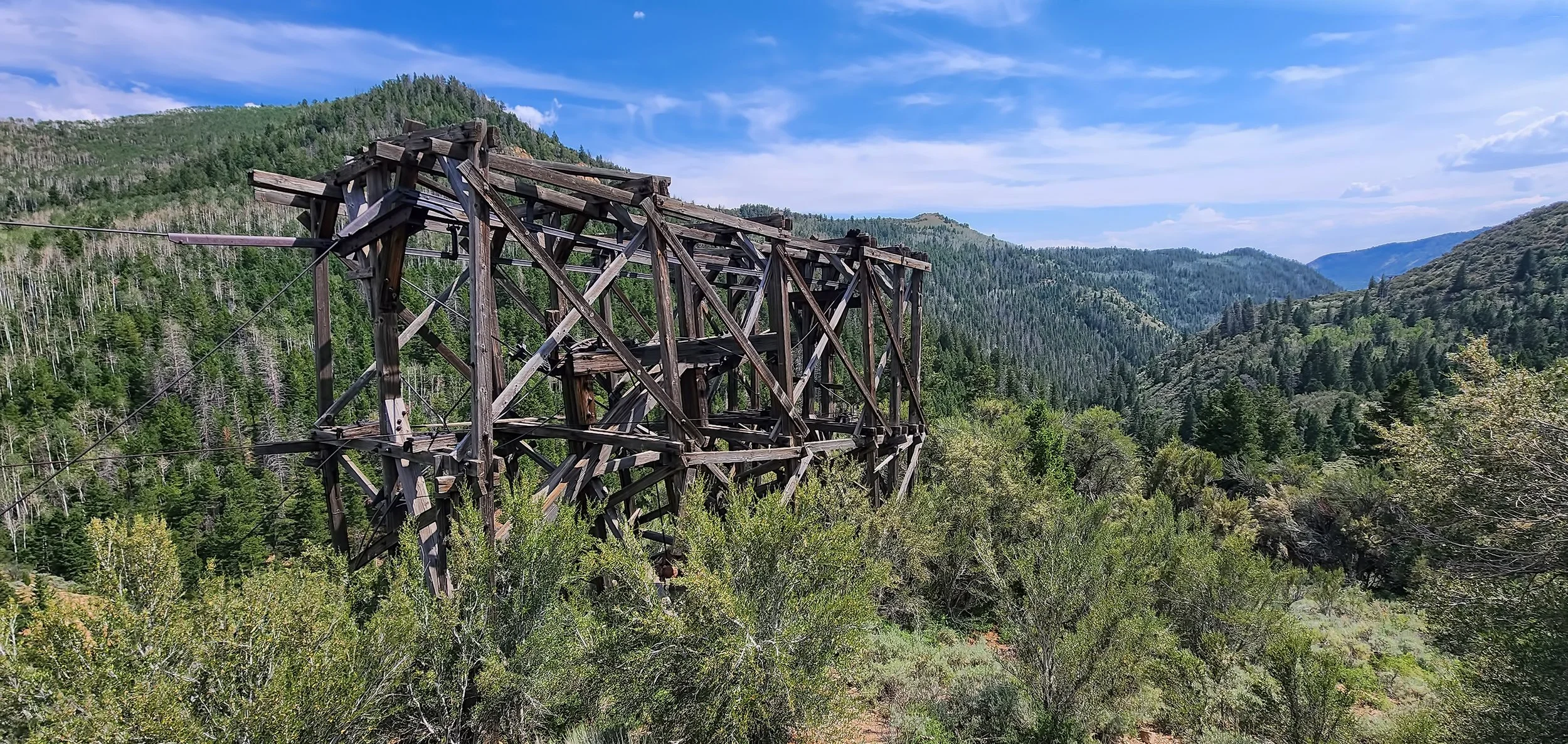 Gravity-powered aerial tramway relic below Bruin Point, circa 1920s.