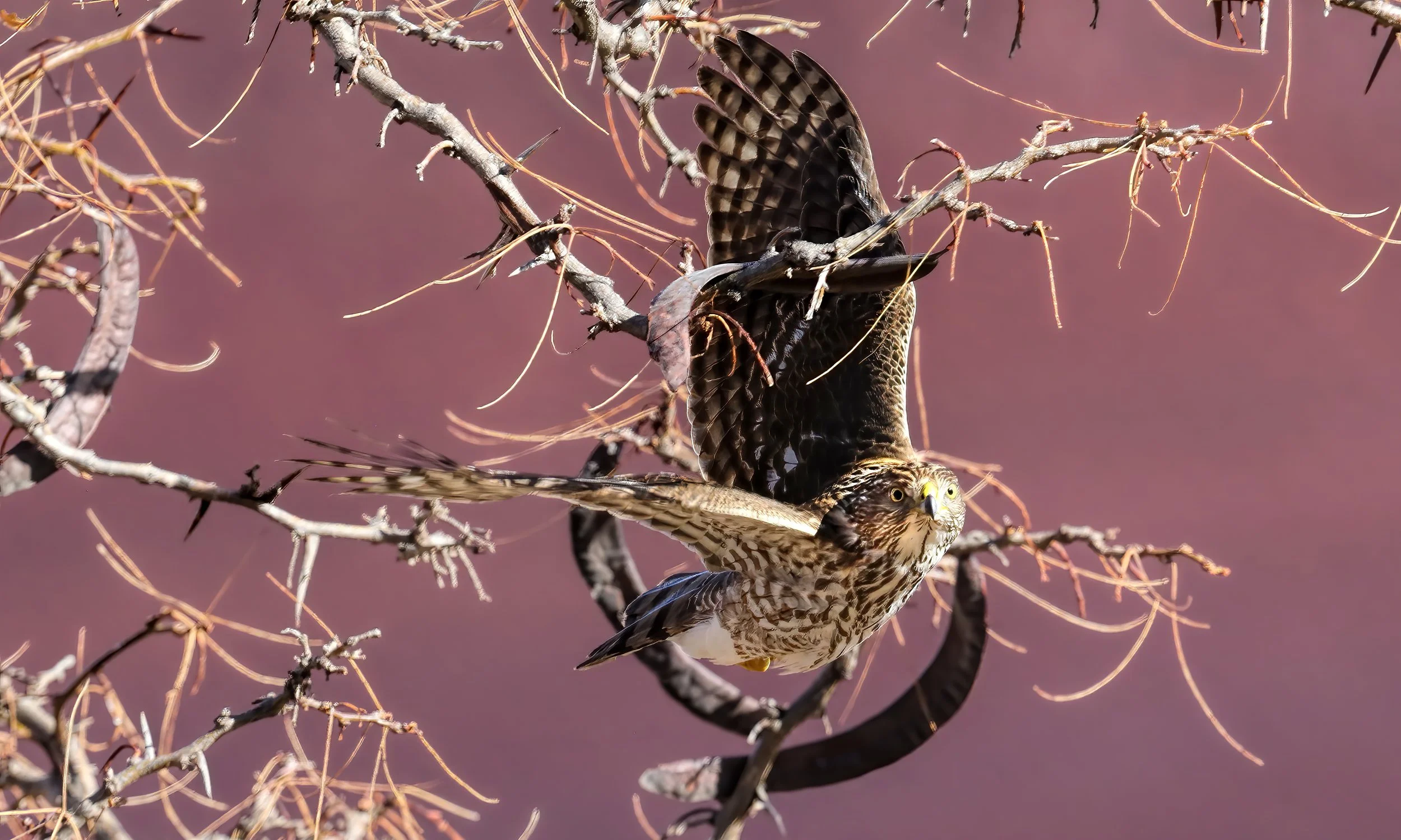Launching from a locust tree... John Buchanan January 2, 2026 with determination in its eyes. Cooper’s Hawk (Astur cooperii).